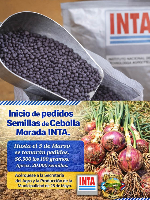 AGENCIA MISIONES.UNO | La Secretaría del Agro y la Producción de la Municipalidad de 25 de Mayo informó que se encuentra abierto el período de toma de pedidos de semillas de cebolla morada INTA, destinadas a fortalecer la producción hortícola local.