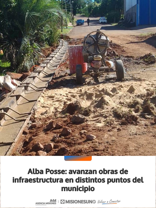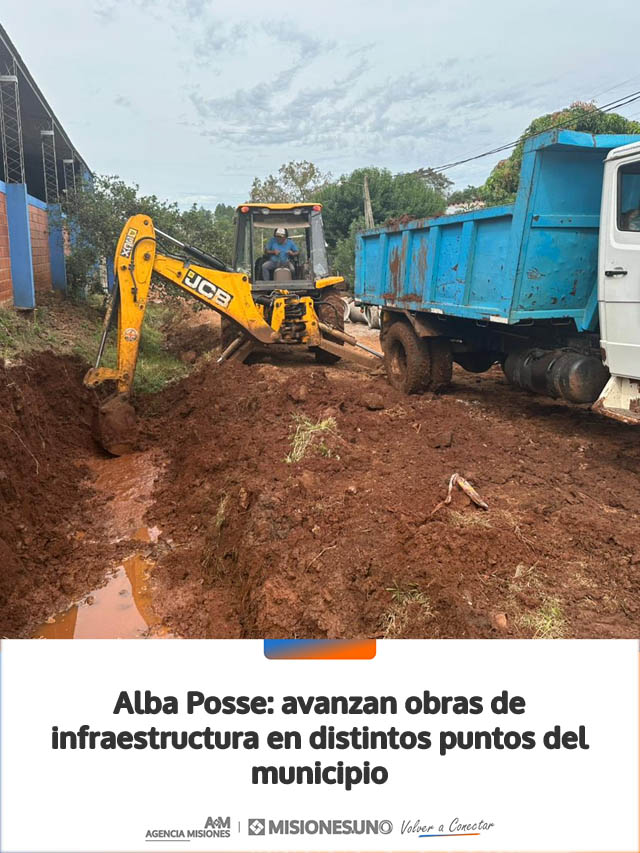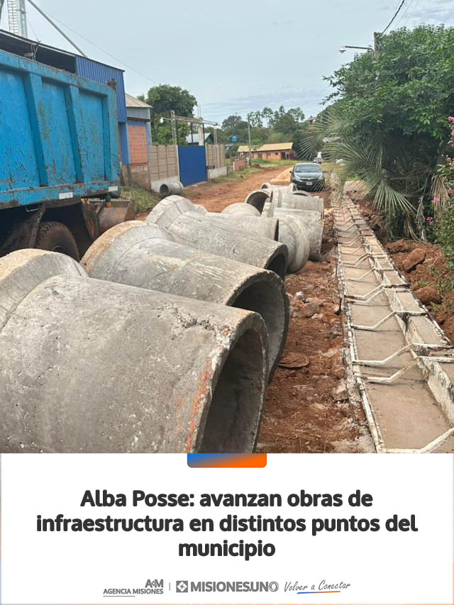 AGENCIA MISIONES.UNO | La Municipalidad de Alba Posse continúa ejecutando trabajos que apuntan a mejorar la infraestructura urbana y la calidad de vida de los vecinos, con intervenciones en caminos, cordón cuneta y alcantarillado.