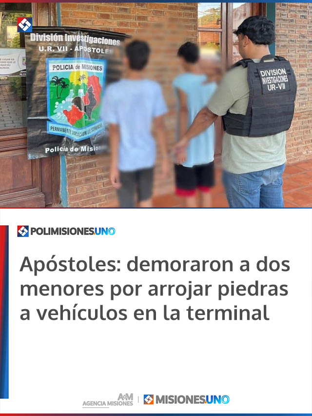 AGENCIA MISIONES.UNO | Dos adolescentes fueron demorados este domingo en Apóstoles tras ser sorprendidos arrojando piedras contra vehículos en la zona de la terminal de ómnibus. La intervención policial permitió evitar daños mayores y preservar la seguridad en el lugar.