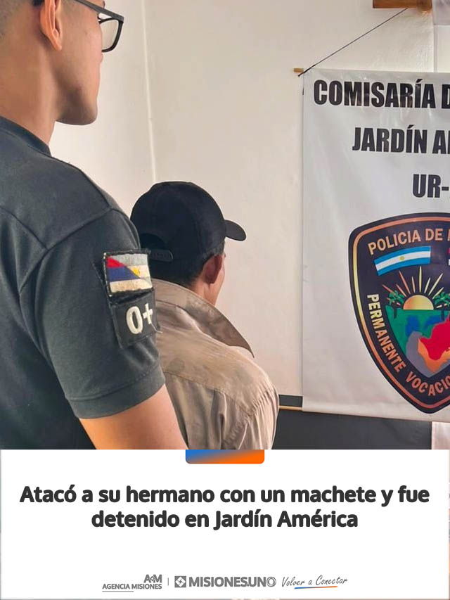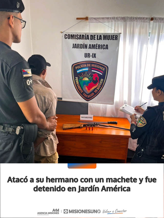 AGENCIA MISIONES.UNO | Un hombre de 29 años fue detenido en Jardín América acusado de haber agredido a su propio hermano con un machete durante una discusión ocurrida en Colonia Primavera.
