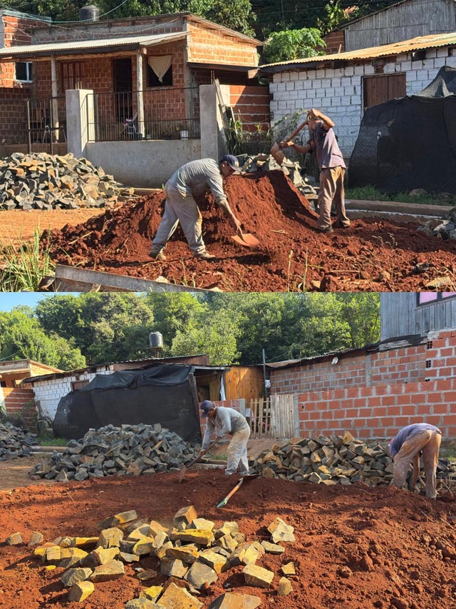 AGENCIA MISIONES.UNO | El equipo de Obras Públicas de Puerto Iguazú continúa con la construcción de empedrado en la intersección de avenida Posadas y Mónica Rodas, en el barrio Costa del Mbocay, una intervención que busca mejorar la transitabilidad y la calidad de vida de los vecinos.