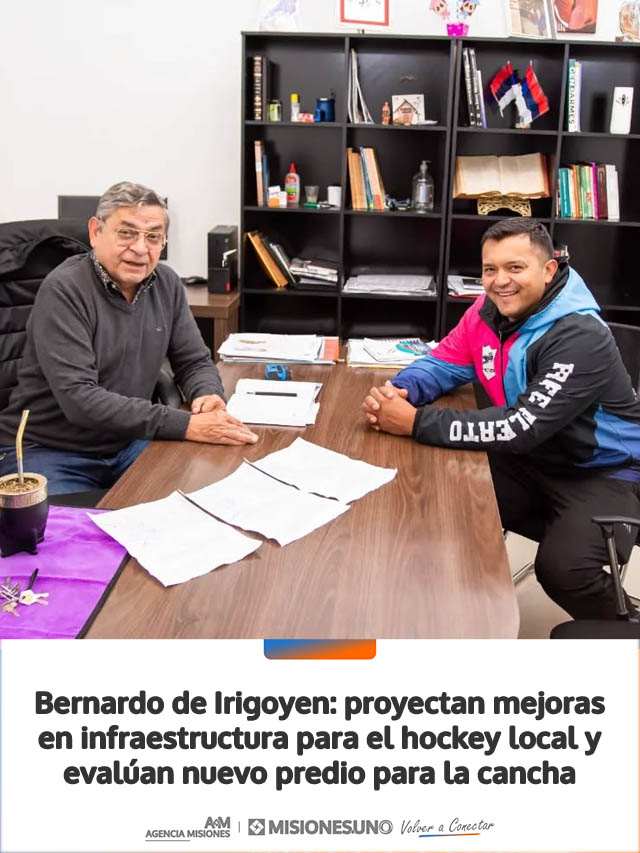 AGENCIA MISIONES.UNO | El intendente de Bernardo de Irigoyen mantuvo una reunión con el profesor de hockey Alberto Cortez, donde analizaron el desarrollo de la disciplina en la localidad y proyectaron nuevas obras para fortalecer la práctica deportiva en distintas categorías.