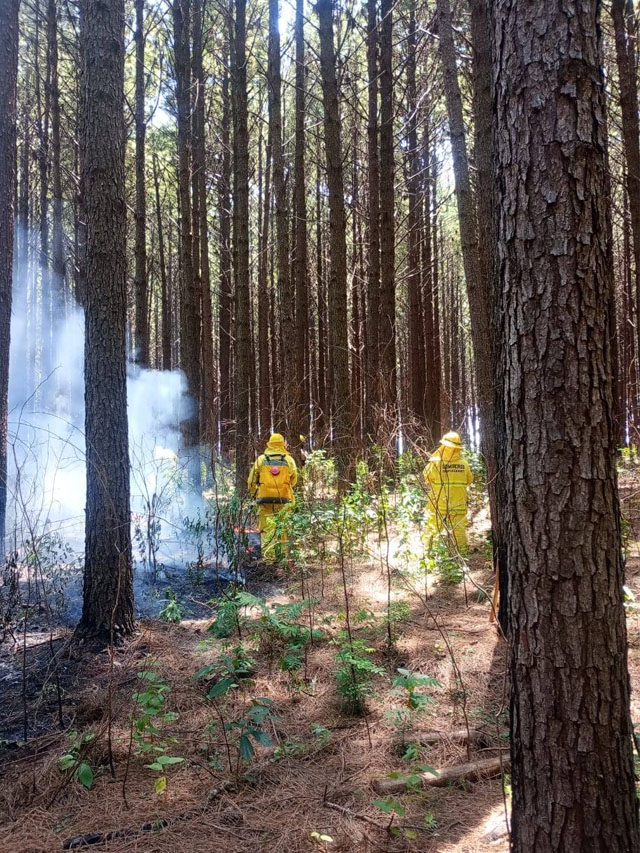 MISIONES.UNO – En Corpus, efectivos de la Comisaría local junto a bomberos de la Policía y bomberos voluntarios continúan trabajando de manera conjunta para extinguir un incendio que se originó en un lote de pinar, afectando aproximadamente una hectárea.