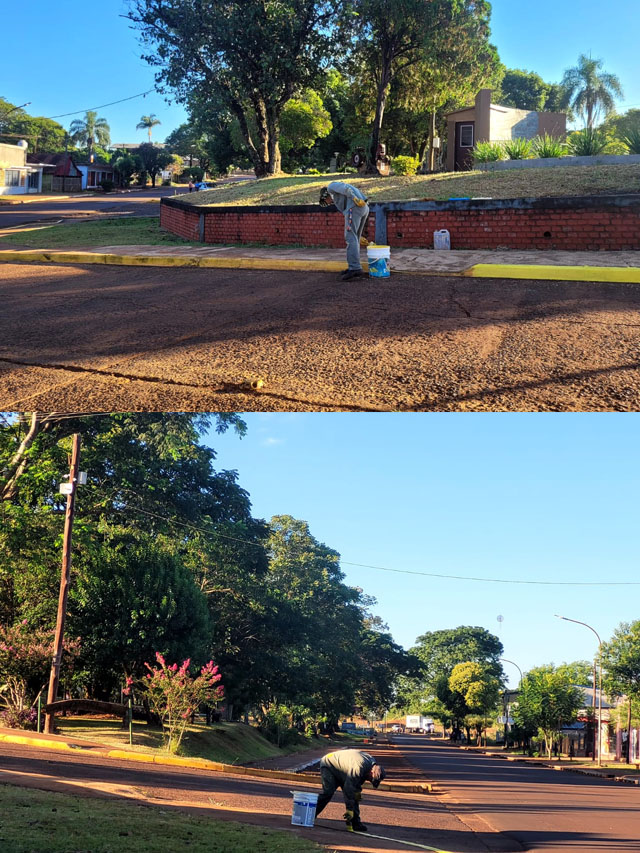 De manera paralela, se ejecutan tareas de pintado en los cordones de la Avenida del Té y en la calle Corrientes, con el objetivo de reforzar la seguridad vial y ofrecer una imagen ordenada y atractiva en zonas de gran circulación.