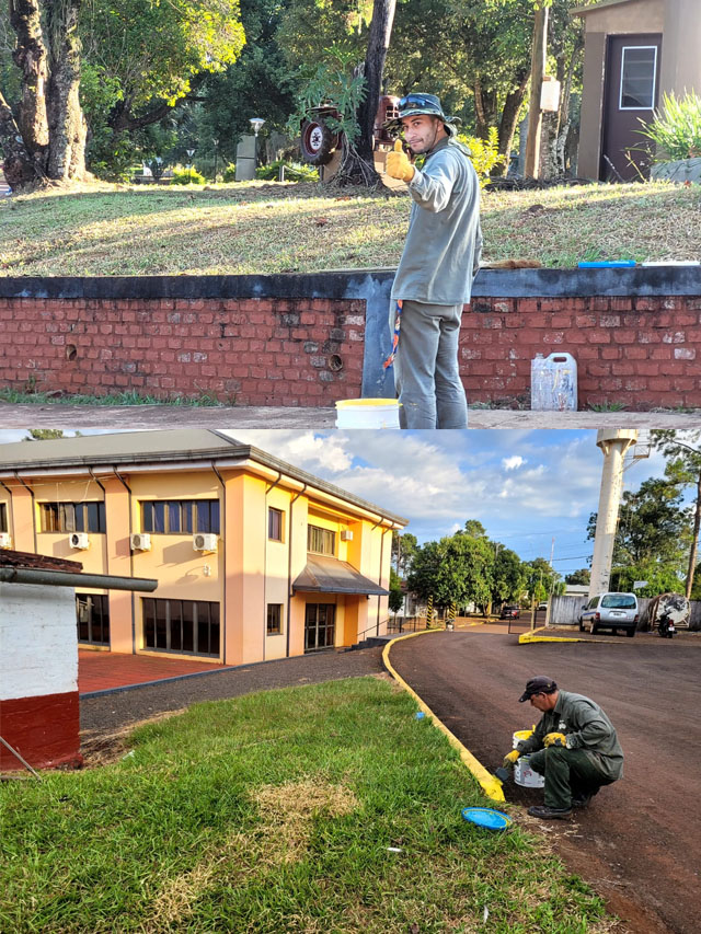 MISIONES.UNO – En Campo Viera, el Gobierno Municipal continúa con las tareas de mantenimiento urbano, enfocadas en la pintura y embellecimiento del predio de la Fiesta Nacional del Té y de sectores estratégicos de la ciudad.