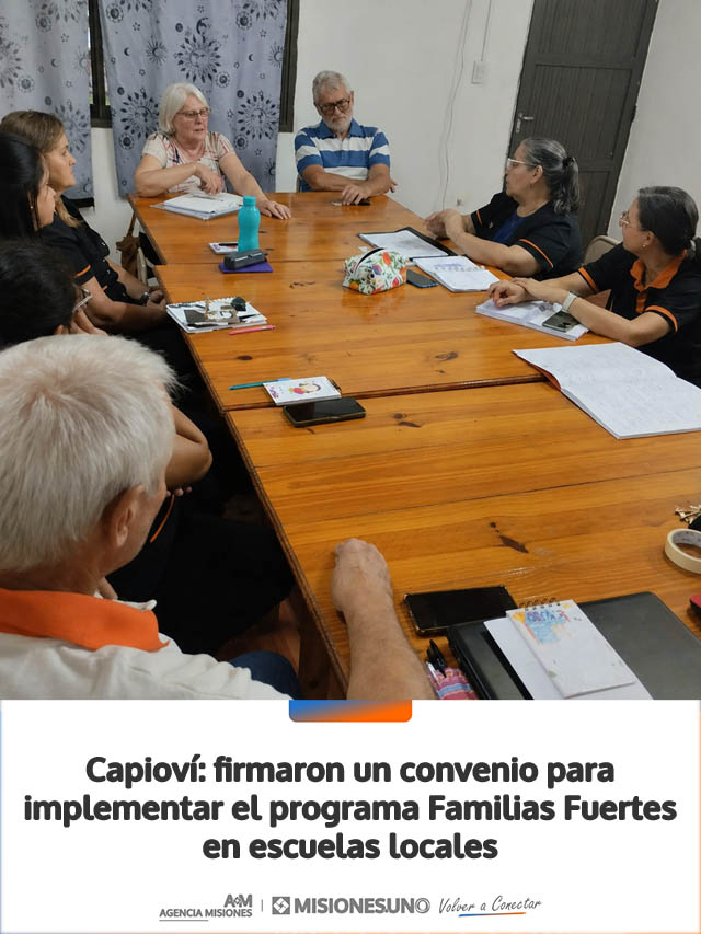 Se llevó adelante la firma de un convenio con la Municipalidad de Capioví para la implementación del proyecto “Familias Fuertes” en las escuelas de la comunidad, enmarcado en un programa de acompañamiento y fortalecimiento de las familias.