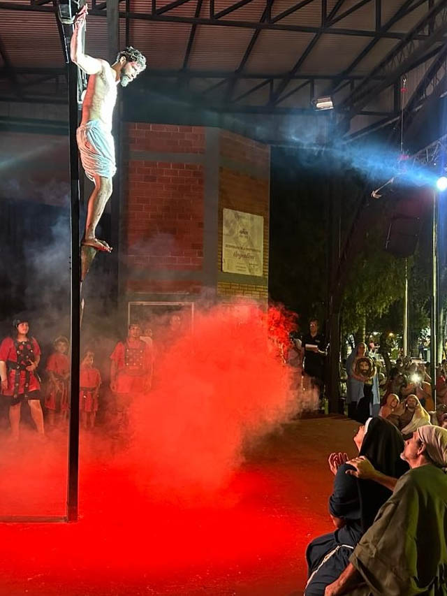 AGENCIA MISIONES.UNO | La Municipalidad de Capioví acompañó la realización de un Vía Crucis que convocó a una importante cantidad de vecinos durante la jornada de Viernes Santo.