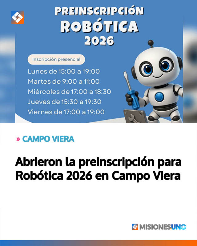 AGENCIA MISIONES.UNO | La Municipalidad de Campo Viera informó que ya se encuentra habilitada la preinscripción para la propuesta educativa Robótica 2026, en el marco de la Red Maker local.