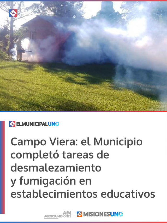 AGENCIA MISIONES.UNO | El Gobierno Municipal de Campo Viera finalizó un operativo integral de limpieza y fumigación en instituciones educativas de Colonia Julio U. Martin, con el objetivo de garantizar espacios saludables y seguros para estudiantes y docentes.
