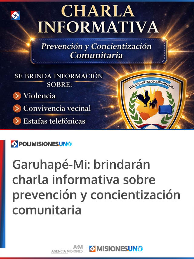 AGENCIA MISIONES.UNO | En el Centro Integrador Comunitario de Colonia San Miguel, en Garuhapé-Mi, se desarrolló una charla informativa destinada a vecinos de la zona, donde se abordaron problemáticas vinculadas a la violencia, la convivencia vecinal y las estafas telefónicas, además de brindar herramientas para la prevención y el acceso a canales de denuncia.