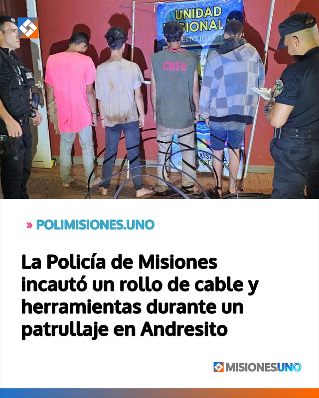La Policía de Misiones incautó un rollo de cable y herramientas durante un patrullaje en Andresito