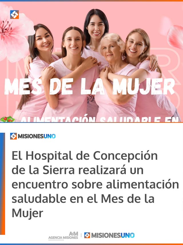 AGENCIA MISIONES.UNO | En el marco del Mes de la Mujer, el Hospital de Concepción de la Sierra organizará un encuentro destinado a promover la alimentación saludable y brindar herramientas para mejorar los hábitos alimentarios de la comunidad.