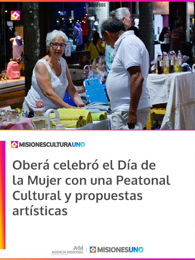 AGENCIA MISIONES.UNO | En el marco del Día Internacional de la Mujer, la ciudad de Oberá realizó una jornada especial en la Peatonal Cultural que reunió a vecinos y vecinas con propuestas artísticas, feria de emprendedoras y espacios gastronómicos.