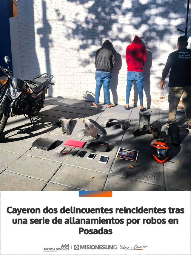 AGENCIA MISIONES.UNO | Dos hombres de 25 y 20 años fueron detenidos en Posadas luego de una serie de allanamientos realizados en el marco de una investigación por múltiples delitos contra la propiedad cometidos en distintos puntos de la ciudad.