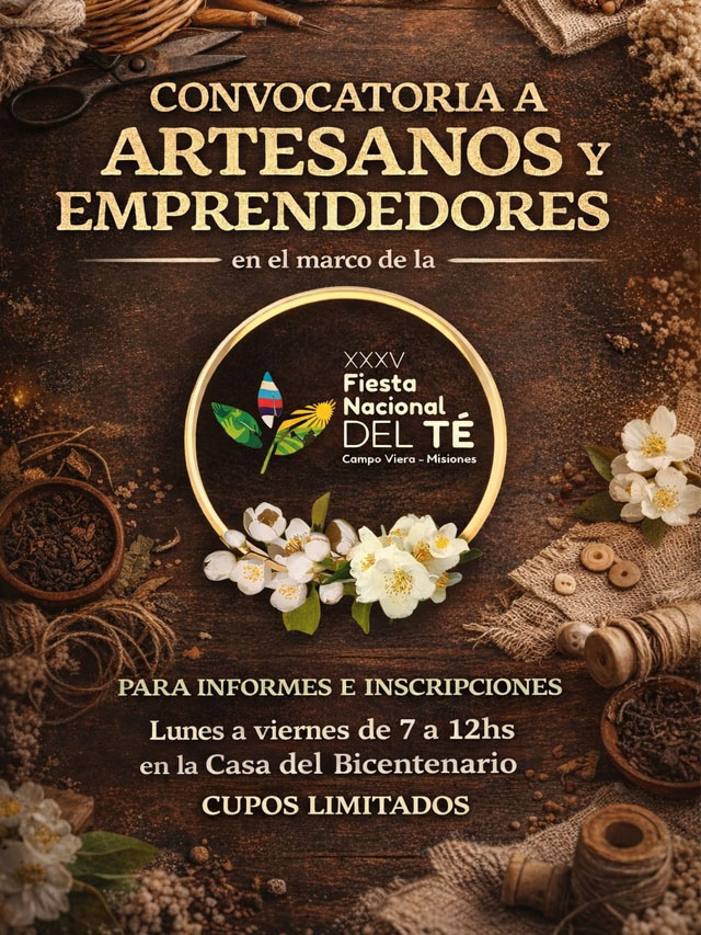 MISIONES.UNO – En Campo Viera se lanzó la convocatoria para que emprendedores y artesanos participen de la 35° edición de la Fiesta Nacional del Té, uno de los eventos más representativos de la localidad y de la provincia.