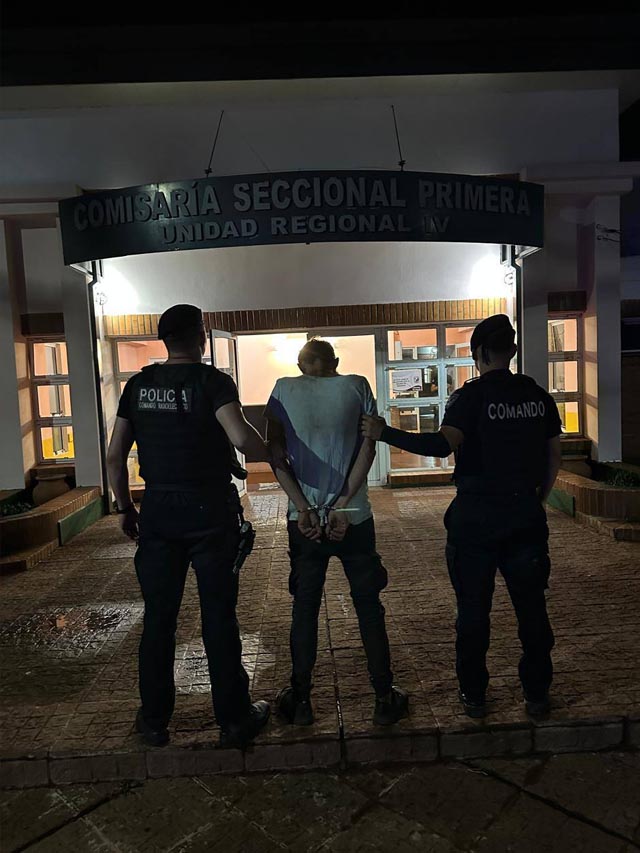 El hombre fue aprehendido y trasladado a la Comisaría Seccional Primera, donde fue examinado por el médico policial de turno antes de quedar alojado en el sector de celdas, a disposición de la Justicia mientras avanzan las actuaciones correspondientes.