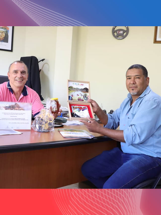 AGENCIA MISIONES.UNO | El intendente de Eldorado, Rodrigo Durán, recibió al productor local Diego Rivaldi, quien obtuvo el segundo puesto en el Concurso Internacional de Mieles durante la 29° Fiesta Nacional de la Apicultura y Expo Apícola del Mercosur, realizada en Maciá, Entre Ríos.