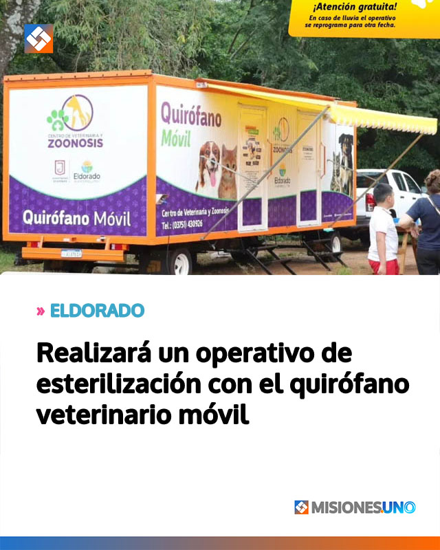 AGENCIA MISIONES.UNO | La Municipalidad de Eldorado anunció un nuevo operativo de esterilización de mascotas a través del Quirófano Veterinario Móvil, impulsado por el Centro de Veterinaria y Zoonosis de la ciudad.