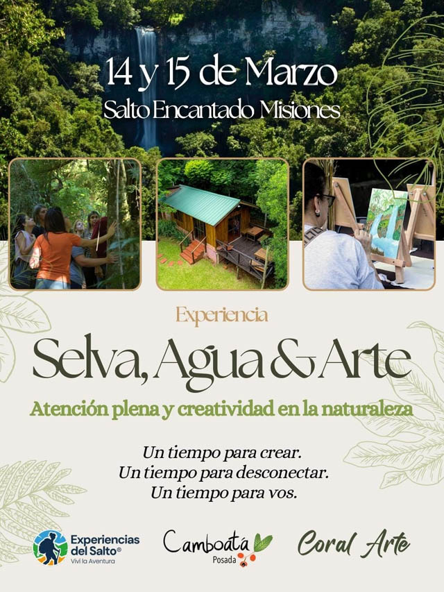 AGENCIA MISIONES.UNO | El sábado 14 y domingo 15 de marzo se realizará la experiencia “Selva, Agua & Arte” en el Parque Provincial Salto Encantado, una propuesta de dos días y una noche que combina naturaleza, descanso y creatividad en plena selva misionera.
