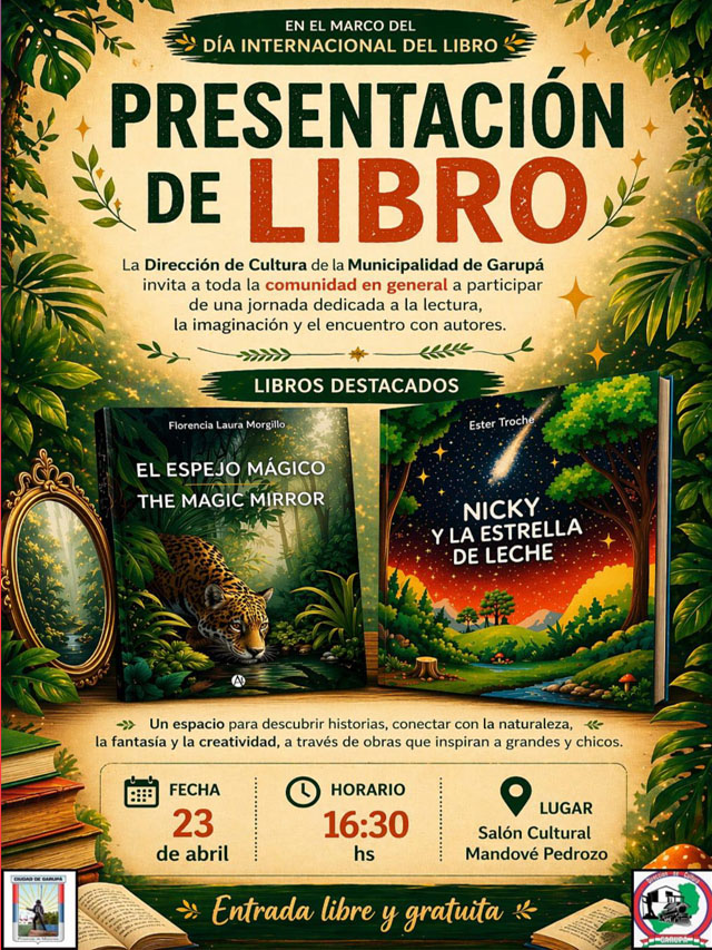 En el marco del Día Internacional del Libro, la Dirección de Cultura de la Municipalidad de Garupá llevará adelante una actividad abierta a toda la comunidad, orientada a fomentar la lectura, la imaginación y el encuentro con autores.