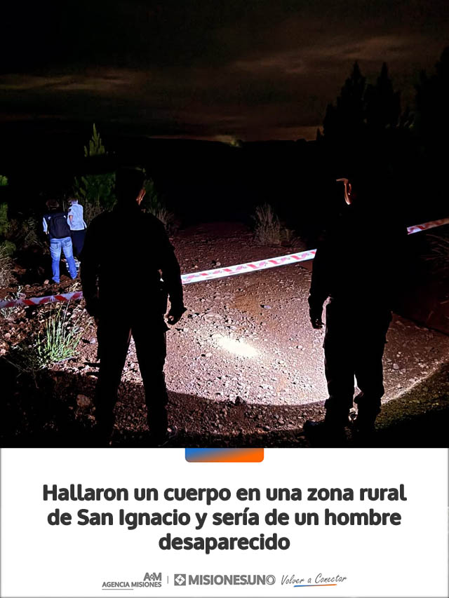 Un cuerpo sin vida fue encontrado este viernes por la tarde en una zona rural de Colonia Pastoreo, en jurisdicción de San Ignacio, y se presume que podría tratarse de Nicolás Alberto Muñoz, de 78 años, quien se encontraba desaparecido desde el pasado 9 de abril.