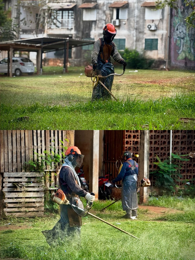 AGENCIA MISIONES.UNO | El Departamento Municipal de Parquización de Puerto Iguazú inició una nueva jornada de trabajos en el barrio 300 Viviendas, con tareas de corte de pasto y limpieza orientadas a mejorar y poner en valor los espacios verdes de uso comunitario.