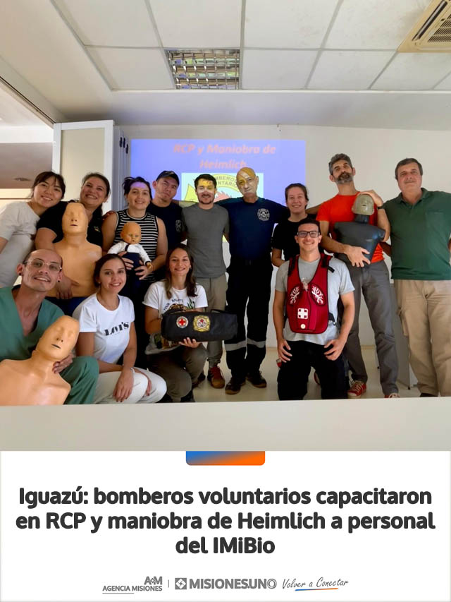 Iguazú: bomberos voluntarios capacitaron en RCP y maniobra de Heimlich a personal del IMiBio