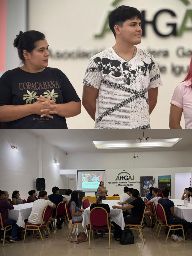 El inicio del curso contó con la participación de Damaris Fernández, de la Oficina de Empleo; Mariana Berro, en representación de la Asociación Hotelera Gastronómica y Afines de Iguazú (AHGAI); y Solange Lerea, de la Asociación de Hoteles de Turismo (AHT) Iguazú. La articulación entre estas instituciones refuerza el vínculo entre capacitación y empleo.