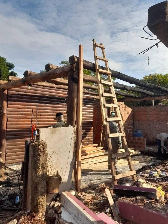 Durante la mañana, personal de Obras Públicas y Parquización avanzó con los trabajos de reconstrucción en una de las viviendas dañadas, mientras que el área de Acción Social se encargó de brindar acompañamiento a las familias. La asistencia incluyó apoyo directo y contención, con el objetivo de atender las necesidades inmediatas y ofrecer respuestas concretas a cada caso.