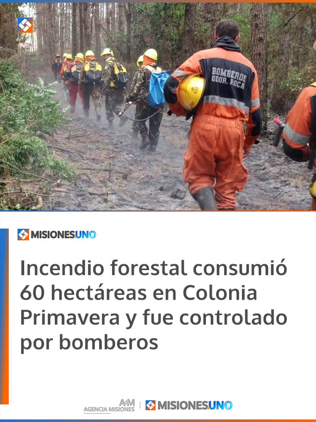 La entrada Incendio forestal consumió 60 hectáreas en Colonia Primavera y fue controlado por bomberos se publicó primero en Agencia Misiones.uno.