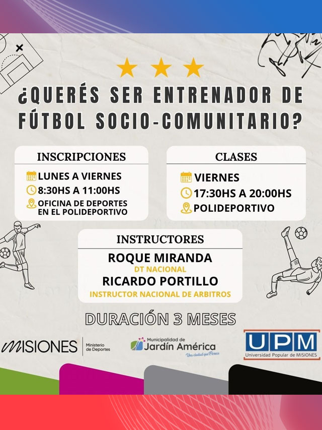 AGENCIA MISIONES.UNO | La Municipalidad de Jardín América lanzó una capacitación destinada a la formación de entrenadores de fútbol socio-comunitario, con clases teóricas y prácticas durante tres meses.