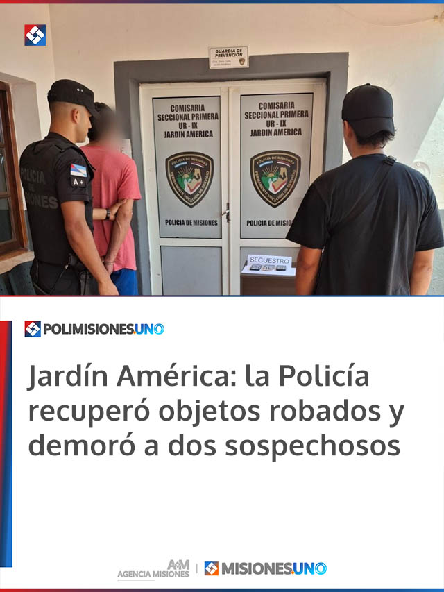 La entrada Jardín América: la Policía recuperó objetos robados y demoró a dos sospechosos se publicó primero en Agencia Misiones.uno.