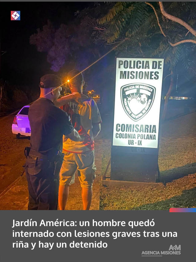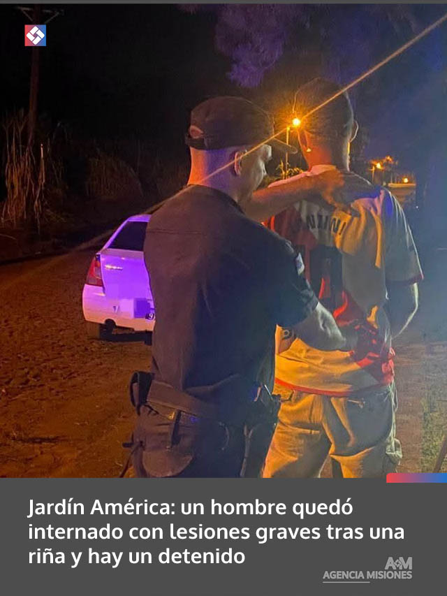 AGENCIA MISIONES.UNO | Un hombre de 33 años permanece internado con lesiones de consideración luego de una pelea ocurrida en Colonia Gisela de Jardín América. Por el hecho, la Policía detuvo a un sospechoso de 35 años, sindicado como uno de los agresores.