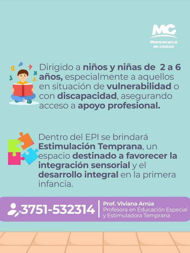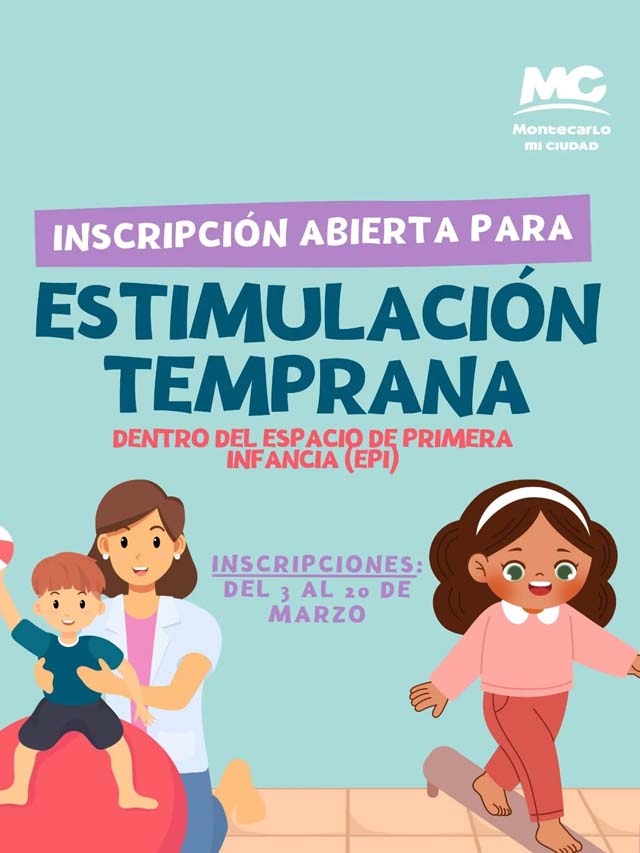 AGENCIA MISIONES.UNO | La Municipalidad de Montecarlo informó que desde el 3 y hasta el 20 de marzo se encuentran abiertas las inscripciones para el servicio de Estimulación Temprana que funcionará dentro del Espacio de Primera Infancia (EPI), destinado a niños y niñas de 2 a 6 años en situación de vulnerabilidad o discapacidad.