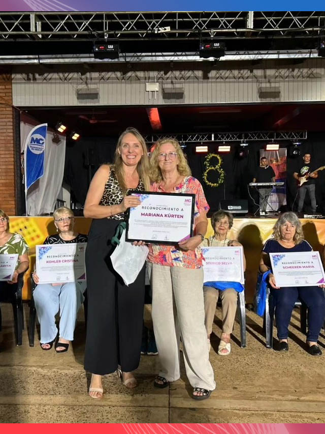 Asimismo, también recibieron un reconocimiento especial Mariana Kürten, María de Gaetano, Beatriz Pavón, Gloria Filizzola y Ana Felisa Ozuna Saldua, en un emotivo momento que puso en valor el rol de las mujeres en la historia y el crecimiento de la comunidad.
