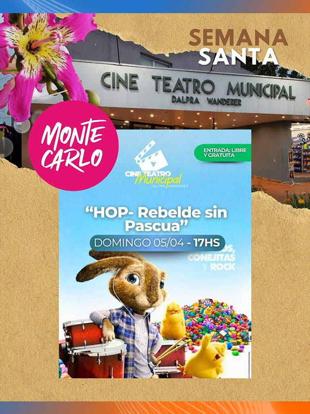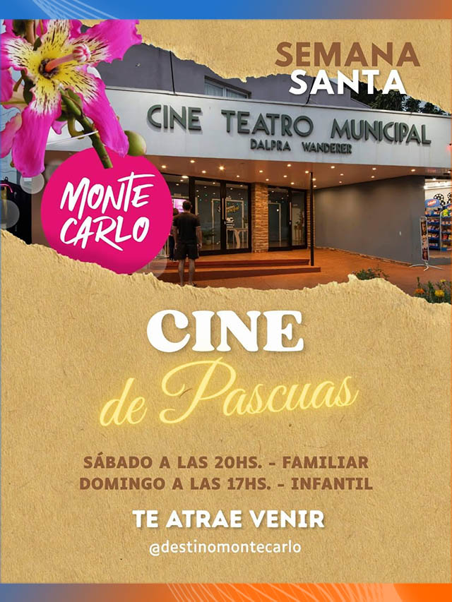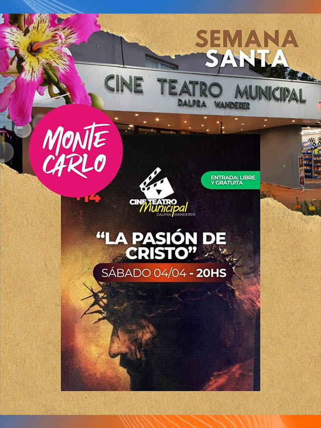 AGENCIA MISIONES.UNO | La Municipalidad de Montecarlo propone una agenda cultural para esta Pascua con dos funciones de cine gratuitas, pensadas para compartir en familia y reflexionar en el marco de Semana Santa.