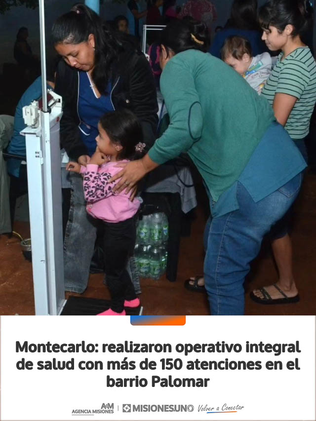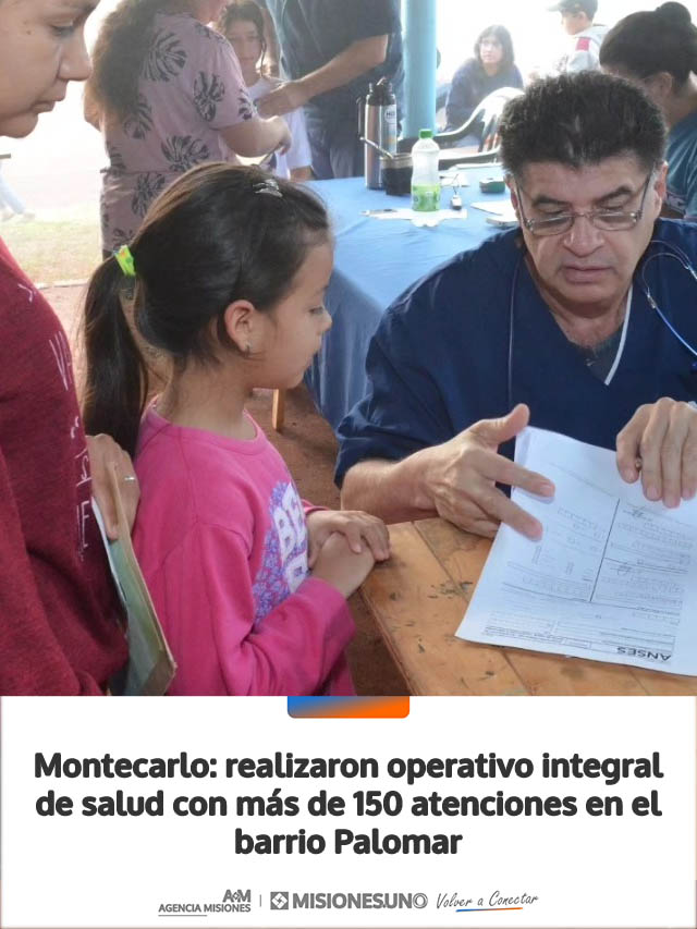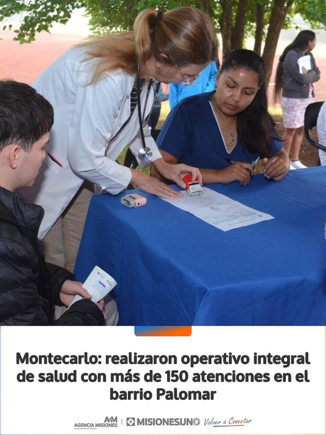 AGENCIA MISIONES.UNO | La Municipalidad de Montecarlo llevó adelante una nueva jornada de atención integral en el barrio Palomar, donde se concretaron 159 atenciones y se aplicaron 93 vacunas, acercando servicios esenciales a los vecinos.