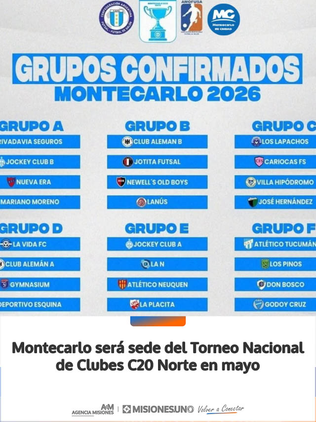 AGENCIA MISIONES.UNO | La ciudad de Montecarlo se prepara para recibir una de las citas deportivas más importantes del calendario nacional con la disputa del Torneo Nacional de Clubes C20 Norte. El evento tendrá lugar del 3 al 9 de mayo, consolidando a la localidad como un epicentro para el desarrollo del deporte juvenil en la región.