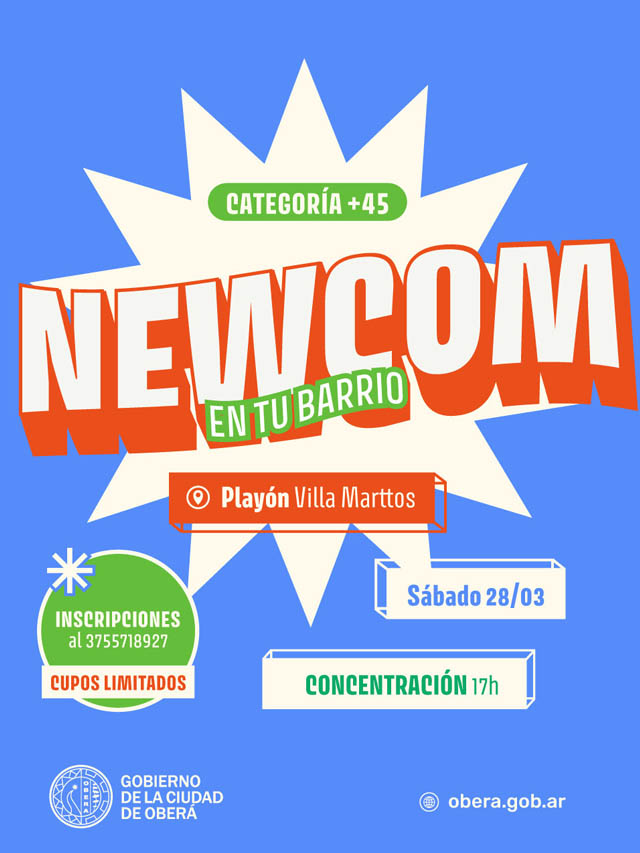 AGENCIA MISIONES.UNO | La Municipalidad de Oberá anunció el inicio del Torneo Apertura Barrial de Newcom +45, cuya primera fecha se disputará este sábado 28 de marzo desde las 17 horas en el playón del barrio Villa Martos.