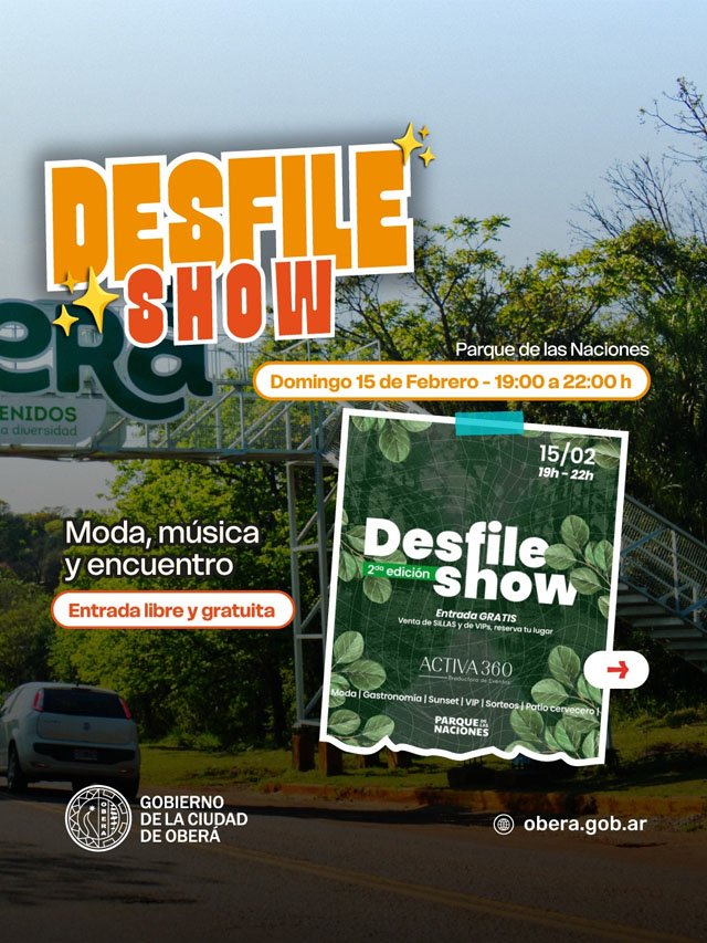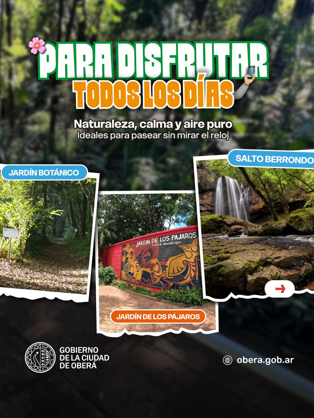 La agenda también incluye un desfile show en el Parque de las Naciones, además de paseos guiados y recorridos en contacto con la naturaleza en el Jardín de los Pájaros, el Jardín Botánico y el propio Salto Berrondo. De esta manera, Oberá se posiciona como una opción con alternativas para todos los gustos durante el fin de semana largo.
