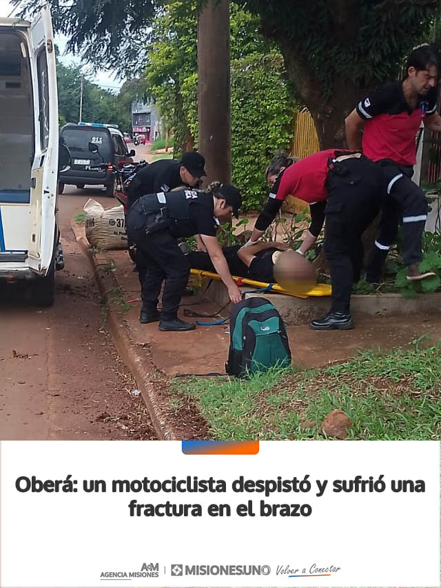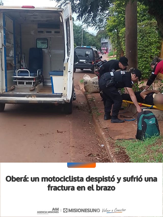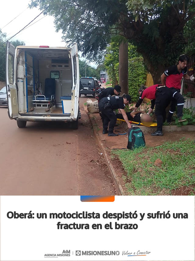 Oberá: un motociclista despistó y sufrió una fractura en el brazo