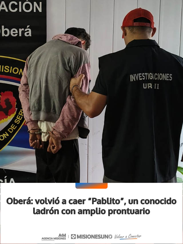 Oberá: volvió a caer “Pablito”, un conocido ladrón con amplio prontuario
