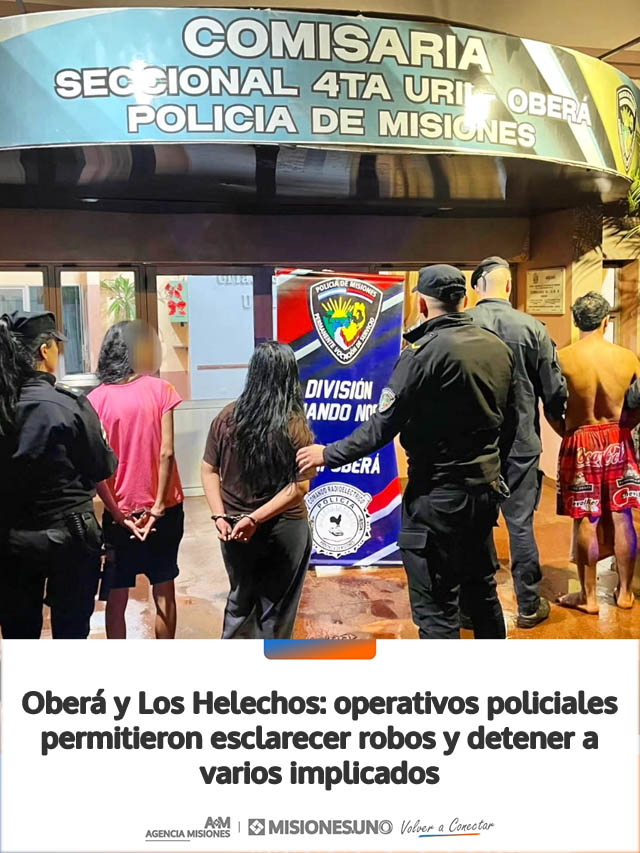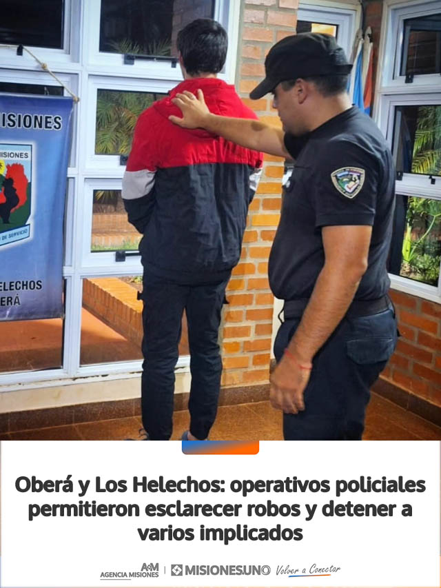 AGENCIA MISIONES.UNO | Durante la noche y la madrugada, la Policía de Misiones llevó adelante una serie de operativos en Oberá y Los Helechos que permitieron esclarecer hechos delictivos, recuperar bienes y detener a varios involucrados.