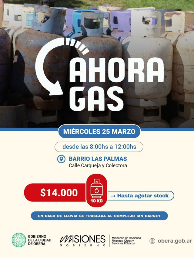 El operativo del programa “Ahora Gas” se llevará a cabo este miércoles en el barrio Las Palmas, brindando a los vecinos la posibilidad de acceder a garrafas a precio accesible. La jornada se desarrollará en el horario de 8 a 12, aunque la atención estará sujeta a la disponibilidad de stock.