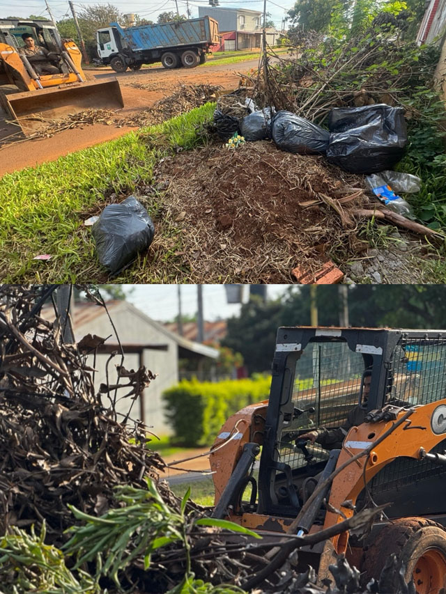 AGENCIA MISIONES.UNO | La Secretaría Municipal de Obras y Servicios Públicos de Puerto Iguazú llevó adelante este lunes trabajos de recolección de ramas, malezas y residuos acumulados en la vía pública en la intersección de las calles Ignacio Abiarú y San Martín, con el objetivo de mantener el orden y la salubridad en el espacio urbano.