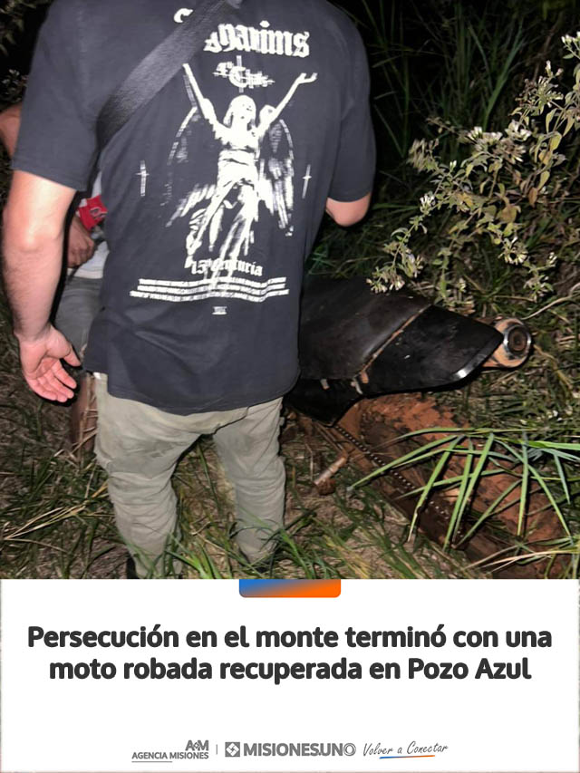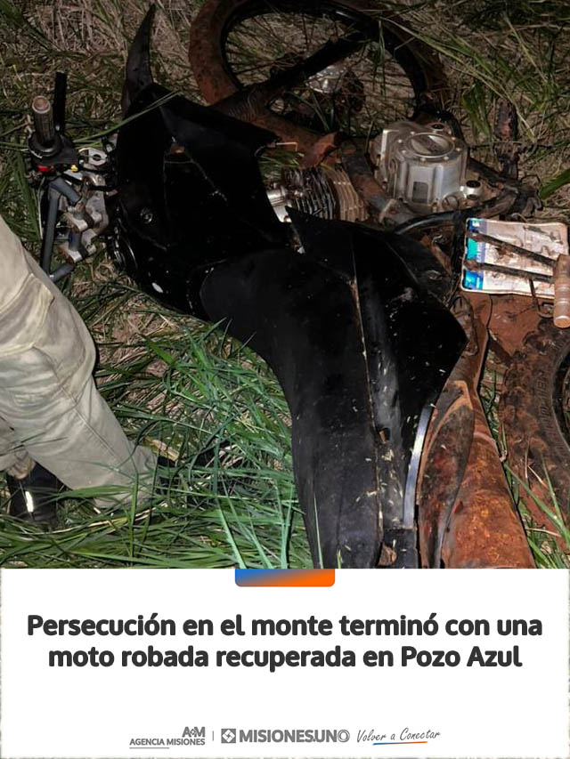 Efectivos de la División Brigada de Investigaciones y Drogas Peligrosas de la Unidad Regional XIV recuperaron una motocicleta robada luego de una persecución que se extendió por diversas picadas en una zona de monte en Pozo Azul.