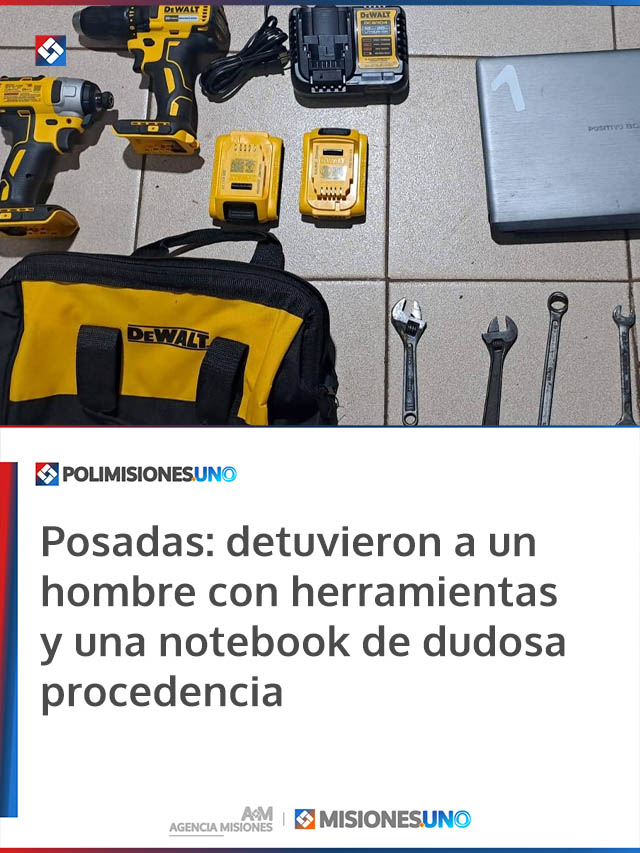 Tras una breve persecución, el sospechoso de 29 años fue alcanzado y detenido. Durante la requisa, los agentes secuestraron en su poder un set completo de taladro inalámbrico, una notebook con sus accesorios, llaves regulables y herramientas de distintas medidas.