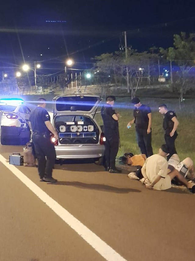 El procedimiento se inició cerca de las 03:15, cuando operadores del Centro Integral de Operaciones 911 advirtieron la presencia de dos hombres que transportaban elementos de gran tamaño a pie, a la altura del puente El Zaimán. Ante el aviso, una comisión policial se dirigió al lugar, momento en el cual los sospechosos abordaron un automóvil Chevrolet gris con balizas encendidas y emprendieron la fuga.