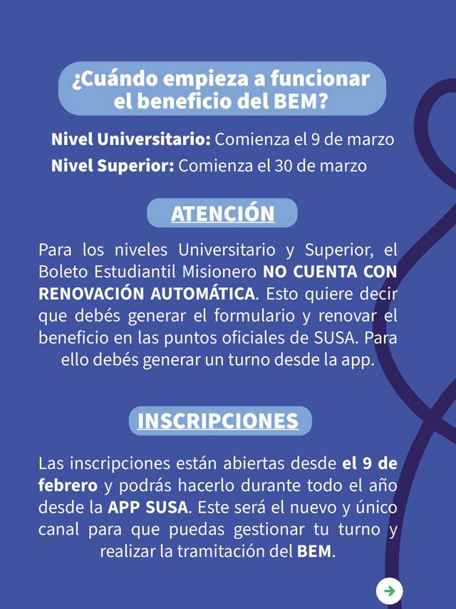 Desde la organización del programa recordaron que se encuentra disponible la información correspondiente al BEM 2026, con el detalle de los requisitos y condiciones que deben cumplir quienes cursan carreras universitarias o estudios de nivel superior. El objetivo es que los estudiantes puedan anticiparse y reunir la documentación necesaria para gestionar el beneficio.