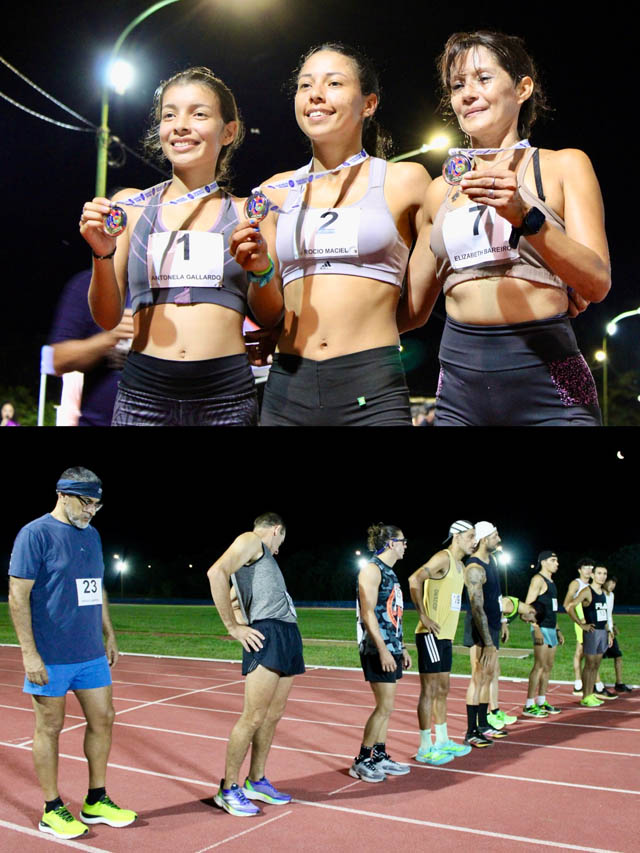 El evento se desarrolló durante la noche del sábado y convocó a corredores que afrontaron el desafío de completar 25 vueltas a la pista sintética de 400 metros. La competencia se disputó bajo la luz de la luna, en un marco de acompañamiento y entusiasmo por parte del público presente.
